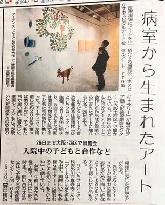 ■入院中の患者とアーティストのコラボ作品を展示、後に作品は病院で展開/大阪府立江之子島文化芸術創造センターでの「ホスピタルアート fromギャラリー展」/来場者のべ280名/読売新聞、毎日新聞、 NHK関西より取材