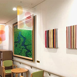 病院の新築時だけでなく、稼働中にこそ生まれる課題に対応して、その規模に合わせた作品を柔軟にご提案しています。 建築を傷めず、原状回復が容易な手法で設置も可能です。