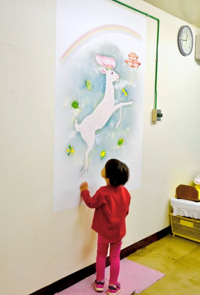 その日から生活環境も大きく変わります。自然物が持ち込めない院内の生活では周りの色が限定的になりがちです。 新築で綺麗な病院であっても、色みやトーンのかたよりは生じ、成長期のお子様の環境としては少し課題も感じられます。