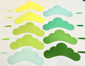 アーティスト井上信太さんによってデザインされたシンプルで木から強いこのかたちを、病院の方々にも手に取っていただき、たくさんのユニークな松葉を集めたいと思います。松葉のカラーチャートは、日本の伝統色の中にも、華やぎのあるフランスの伝統色も一部差し入れています。このプロジェクト終了後に医療機関の壁面にも飾っていただけることを想定して、色彩構成させていたただきました。