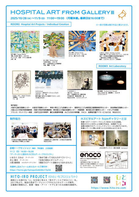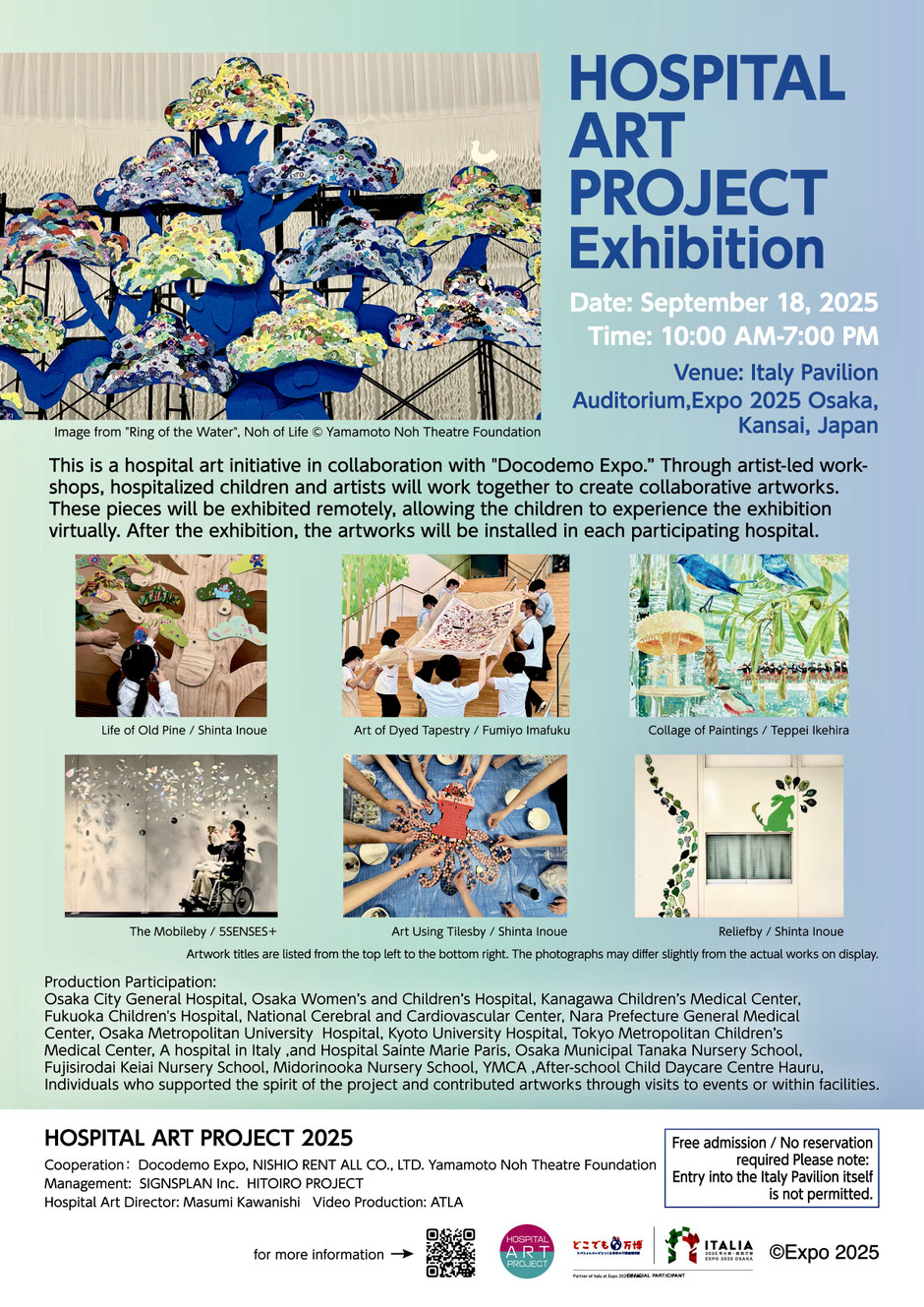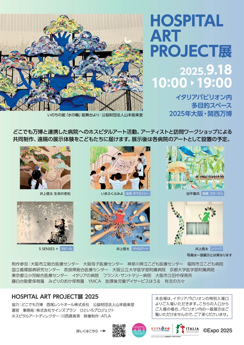 2025年大阪・関西万博を機に「どこでも万博」と連携し、特別なケアを必要とするスペシャルキッズやご家族、医療従事者やまわりの方々など、医療に関わる様々な人たちと、アーティストが共同制作で楽しくつくる「ホスピタルアート・プロジェクト」