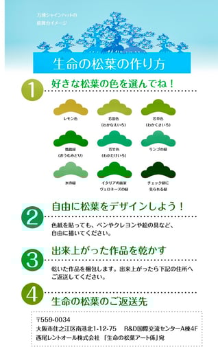 松葉を受け取ったら、是非、あなたの好きなもの、大切なもの、面白いと思うもの、夢などを自由に描いて楽しんで下さいね。