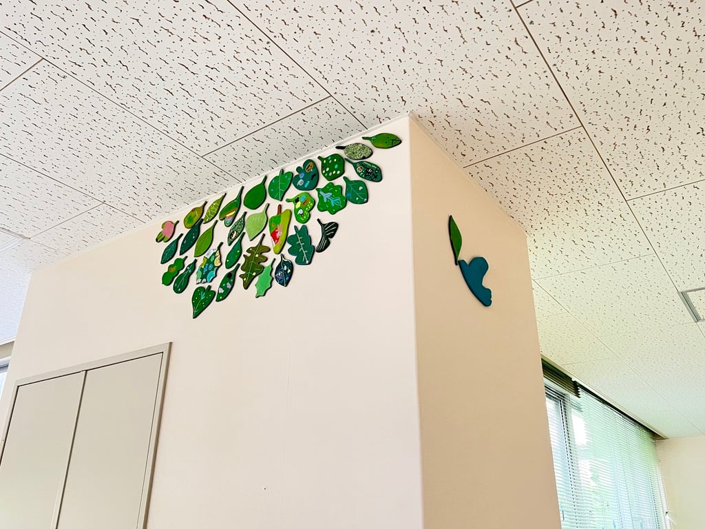 6病棟に31枚の葉っぱを異なるフォーメーションで配置。 それぞれのシーンで物語がひろがるように、アーティストが構成しています。