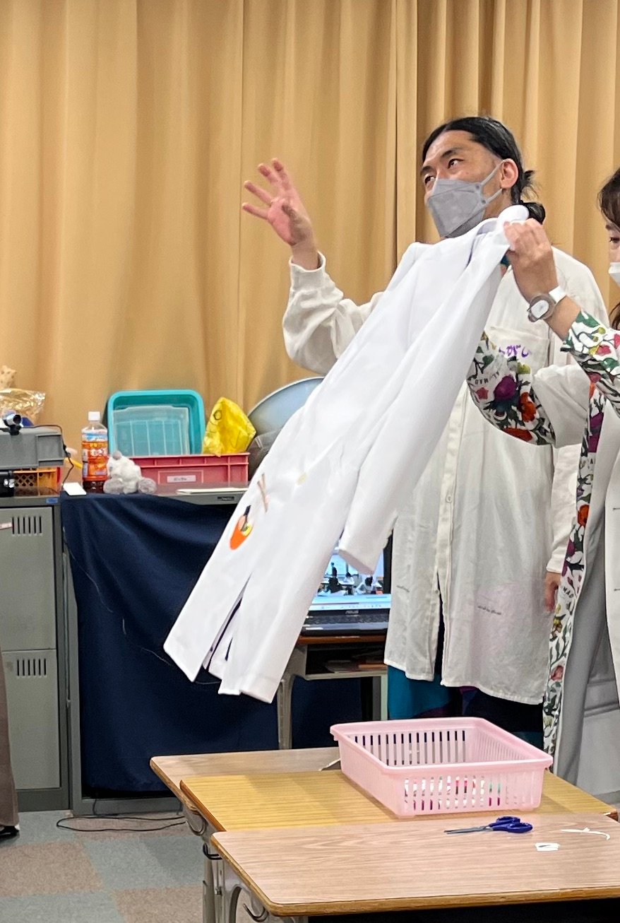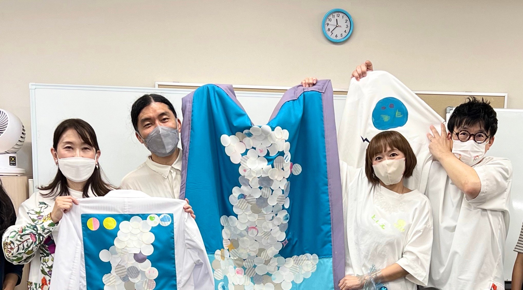 大阪市立都島中学校 ハンドクラフト部 (タペストリーの縫製) 大阪市立総合医療センター内分教室の児童生徒(タペストリーの制作) ヒガシ テッペイ(ファッションデザイナー/デザイン原案・白衣制作・ワークショップ 林容 林都資恵 近藤景子(ワークショップ) 川西真寿実(ディレクション) |