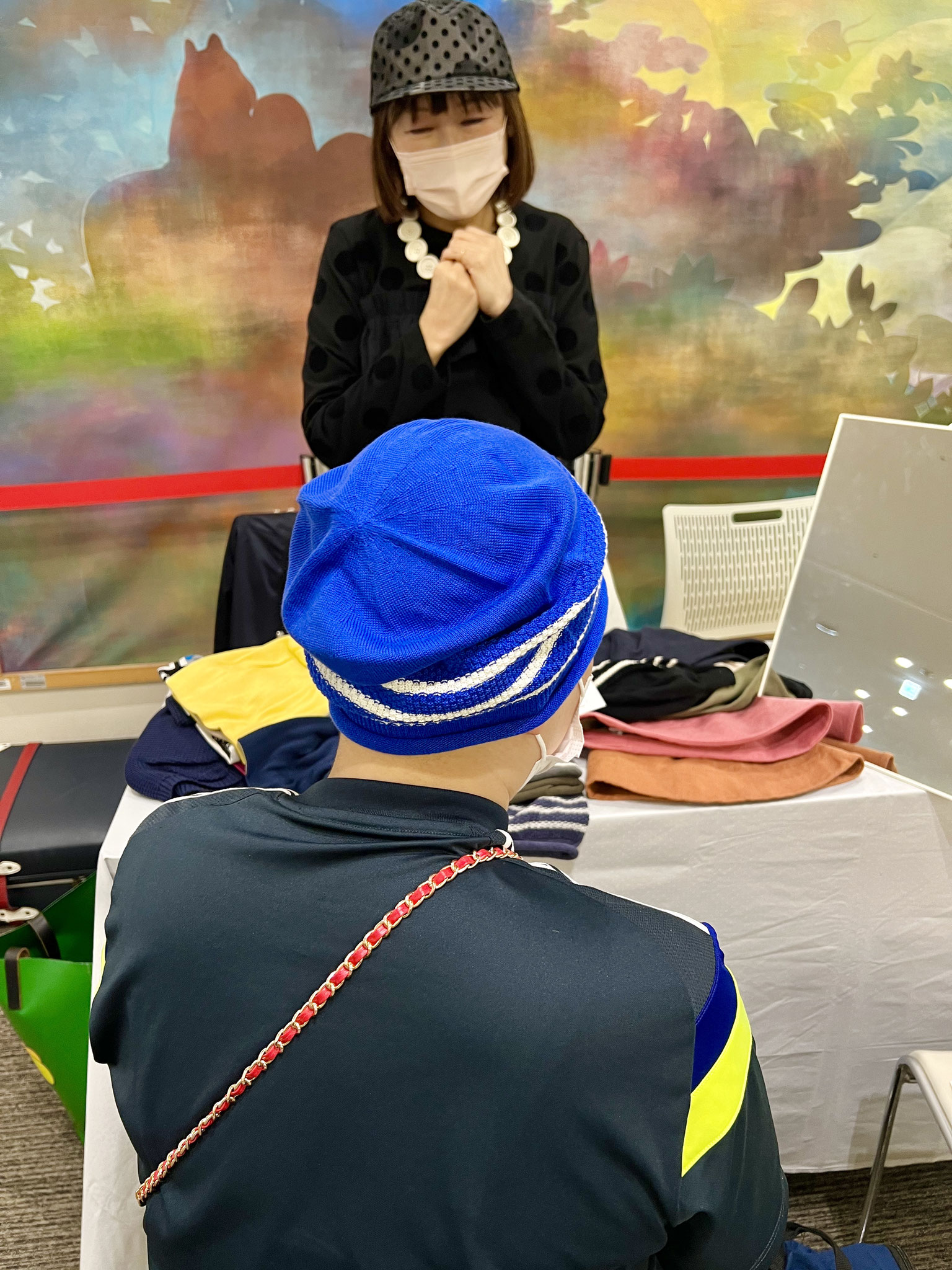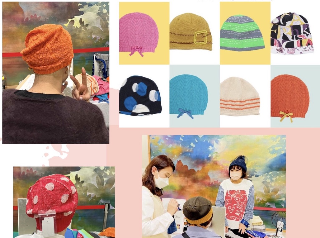治療のための副作用で脱毛がおこる患者さんの笑顔のために、帽子を開発されたe.shi.toさん。 おしゃれで、通気性、取り扱いもよく、かぶりごごちのよい、「HAPPY HATS」と名づけられたカラフルな帽子の提供をうけて、闘病中の患者様への寄付活動をご一緒しています。 闘病中の見え方をより明るく工夫する「リハビリカラー®️」のアドバイスもまじえながら、 患者様と楽しい帽子選びのひとときをお届けしています。 |