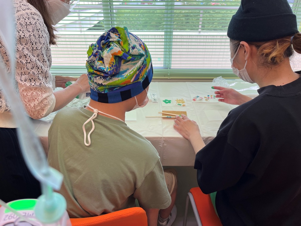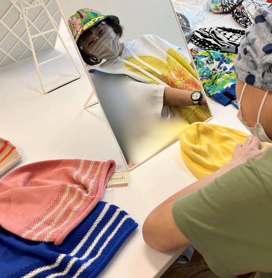 治療のための副作用で脱毛がおこる患者さんの笑顔のために、帽子を開発されたe.shi.toさん。 おしゃれで、通気性、取り扱いもよく、かぶりごごちのよい、「HAPPY HATS」と名づけられたカラフルな帽子の提供をうけて、闘病中の患者様への寄付活動をご一緒しています。 闘病中の見え方をより明るく工夫する「リハビリカラー®️」のアドバイスもまじえながら、 患者様と楽しい帽子選びのひとときをお届けしています。